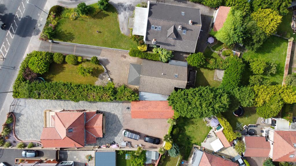 Large laid lawn to the front of the property with trees and shrubs. Long tarmac driveway leading to the block paved frontage, providing ample off road parking.