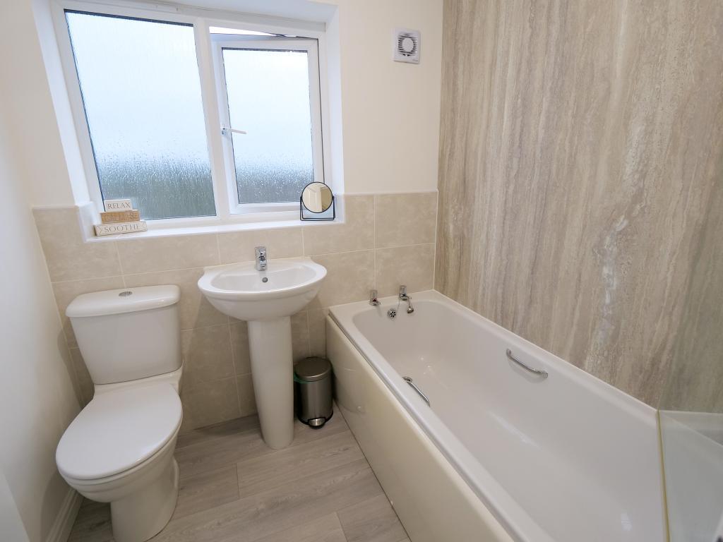 Three piece suite comprising; bath with an overhead shower, wash hand basin and low level WC. Double glazed uPVC window to the rear aspect. Radiator.