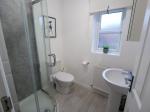Three piece suite comprising; shower cubicle, wash hand basin and low level WC. Double glazed uPVC window to the front aspect. Laminate flooring. Double radiator.