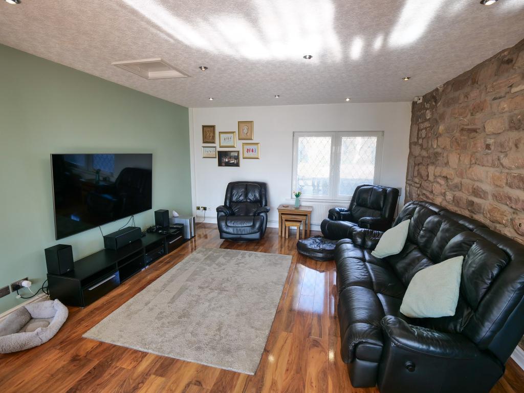 16' 10'' x 14' 9'' (5.15m x 4.52m) Double glazed uPVC window to the front aspect. Double radiator. Feature stone walls, wooden flooring and downlights. Door leading to-