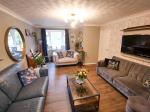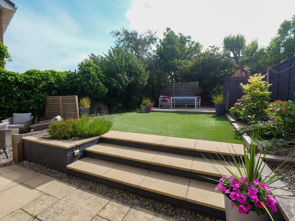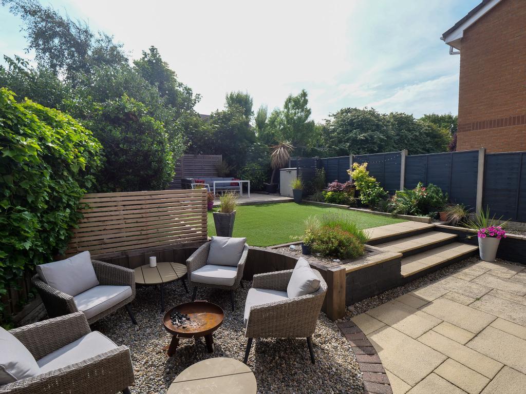 Large block paved driveway to the front, providing ample off road parking. Landscaped rear garden with a paved patio area, and decorative stone chippings. Steps leading to the artificial grass, flower bed and second patio area.