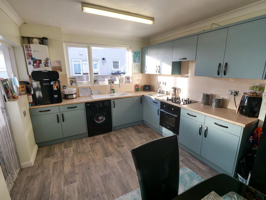 17' 5'' x 10' 6'' (5.31m x 3.22m) Fitted kitchen with a range of wall and base units, contrasting work surface, incorporating a one and a half sink unit. Electric oven, four ring gas hob and extractor fan. Space for a washing machine and fridge freezer. Double glazed uPVC window to the side aspect. Radiator. Coving to the ceiling. Open double doorway leading to-