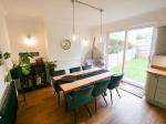 8' 8'' x 8' 11'' (2.66m x 2.72m) Modern fitted kitchen with a range of wall and base units, contrasting work surface, incorporating a one and a half sink unit. Belling freestanding cooker with a five ring gas burner and Belling extractor fan. Integrated dishwasher, fridge freezer. Double glazed uPVC window to the side aspect.