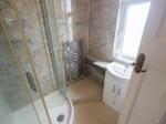 Three piece suite comprising; shower cubicle, wash hand basin and low level WC. Double glazed uPVC window to the side aspect. Heated towel rail.