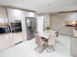 12' 7'' x 19' 2'' (3.86m x 5.85m) Modern fitted kitchen with a range of wall and base units, contrasting work surface, incorporating a one and a half stainless steel sink unit. Double electric oven, five ring gas hob and stainless steel extractor. Integrated dishwasher and space for an American style fridge freezer. Downlights. Double glazed uPVC French doors leading to the sitting room.