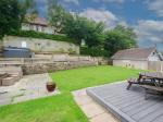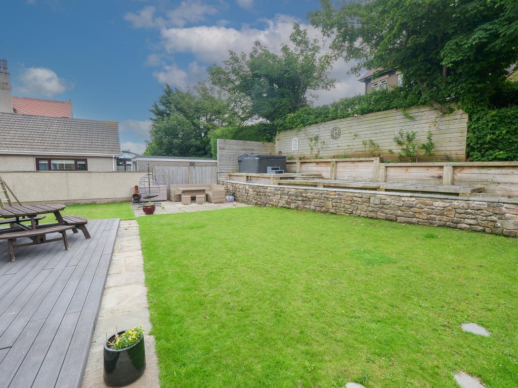 Private front garden with a laid lawn, high hedge, flowerbed and paved pathway leading to the main entrance. Long driveway to the side leading to the single garage. Enclosed rear garden with a large laid lawn area, decking and paved patio. Steps leading upwards to a second patio area. The currently owners use the space for their hot tub.