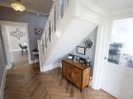 Grand entrance hallway with wooden flooring and coving to the ceiling. Stairs leading to the first floor landing. Two double glazed windows.