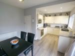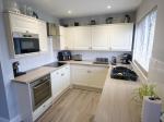 Modern fitted kitchen with a range of wall and base units, contrasting work surface, incorporating a stainless steel sink unit. Electric oven and four ring electric hob. Integrated microwave, fridge and freezer. Double glazed uPVC window to the rear aspect.