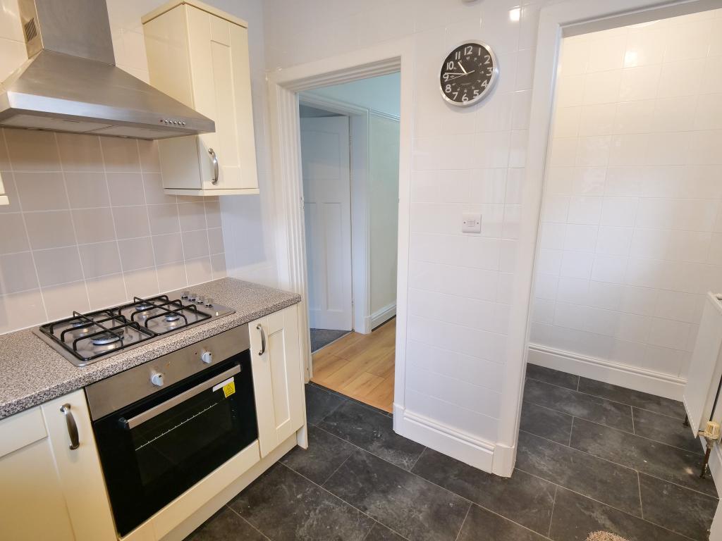 7' 8'' x 8' 1'' (2.35m x 2.48m) Fitted kitchen with a range of wall and base units, contrasting work surface incorporating a stainless steel sink unit. Electric oven, four ring gas hob and stainless steel extractor fan. Space for a washing machine and fridge freezer. Double glazed uPVC window to the side and rear aspect and uPVC door leading to the rear garden.