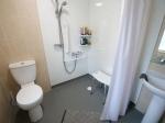 Fitted shower and two piece suite comprising; wash hand basin and low level WC. Double glazed uPVC window to the side aspect. Radiator.
