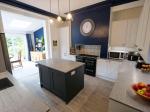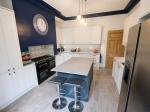12' 5'' x 12' 11'' (3.79m x 3.96m) Modern fitted kitchen with a range of wall and base units with contrasting work surface, incorporating a sink unit and breakfast bar. Free standing Stoves oven, with seven ring gas hob. Integrated dishwasher and space for an American style fridge freezer. Decorative coving to the ceiling. Open plan to-