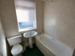 Three piece suite comprising; bath with an overhead shower, wash hand basin and low level WC. Double glazed uPVC window to the side aspect. Storage cupboard.