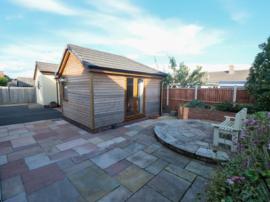 To the front you will find a large garden with two driveways, decorative stone chippings, flowerbeds, decking area and shelter/canopy. Enclosed rear garden with a large paved patio and raised flowerbed.