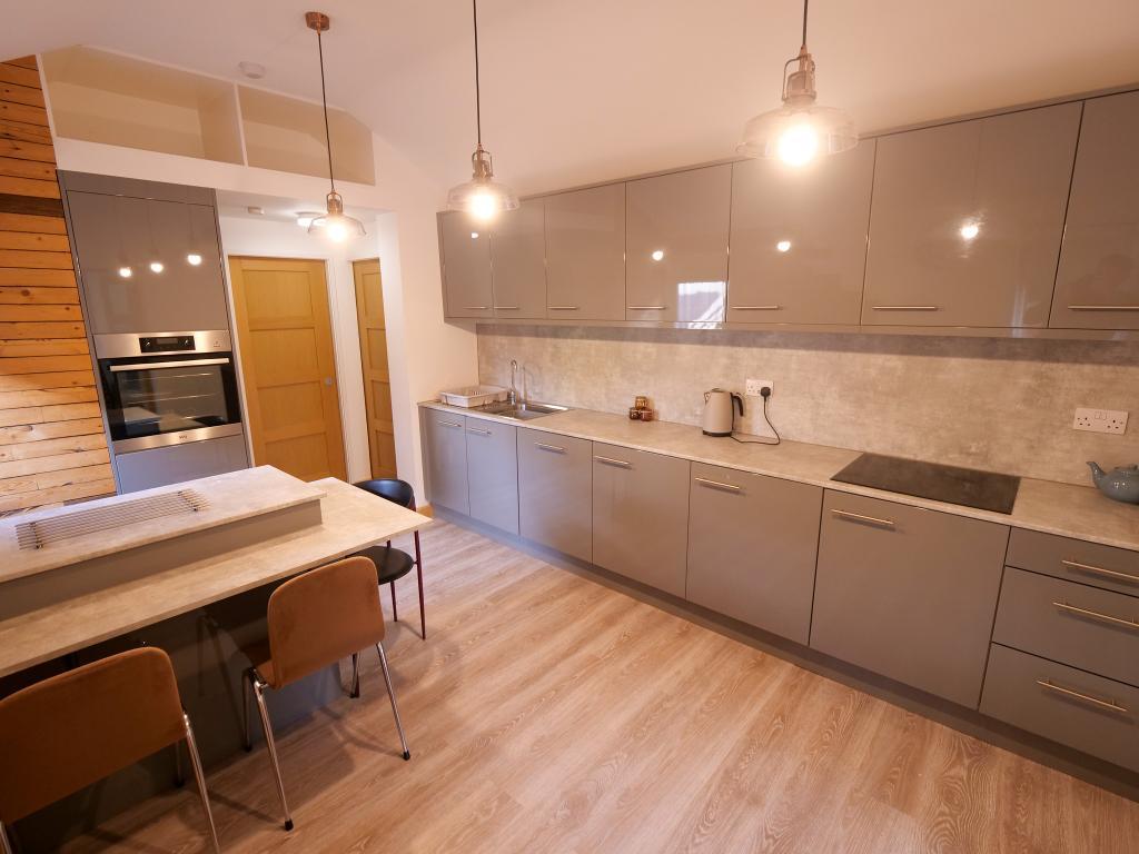 9' 0'' x 8' 1'' (2.76m x 2.47m) Modern Fitted kitchen with a range of wall and base units, contrasting work surface, incorporating a stainless steel sink unit. Electric oven, four ring induction hob and stainless steel extractor fan. Integrated fridge freezer and space for a dishwasher. Double glazed uPVC window to the front and rear aspect. Single uPVC door leading to the front garden.
