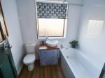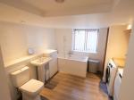 Three piece suite comprising; bath, wash hand basin and low level WC. Double glazed uPVC window, to the rear aspect. Radiator, storage cupboard and downlights. Space for a washing machine and tumble dryer.