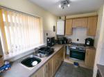 Fitted kitchen with a range of wall and base units, with contrasting work surface, incorporating a stainless steel sink unit. Electric oven, four ring electric hob and extractor fan. Space for a washing machine and fridge freezer. Double glazed uPVC window to the side, and uPVC door leading to the rear garden.