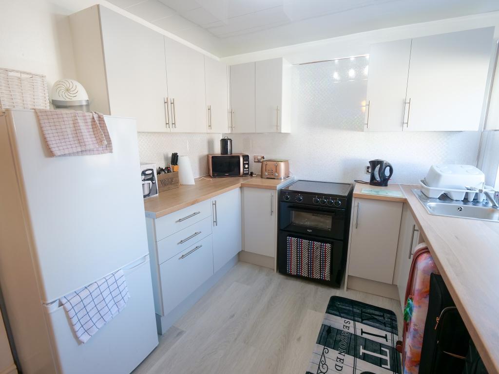 8' 9'' x 13' 8'' (2.69m x 4.2m) Modern fitted kitchen with a range of wall and base units comprising: stainless steel sink unit and a freestanding cooker with a four electric hob. Space for a fridge freezer, washing machine and tumble dryer. Double glazed uPVC window and uPVC door to the front aspect. Double radiator.
