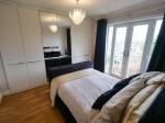 7' 4'' x 9' 8'' (2.26m x 2.96m) Modern fitted kitchen with a range of wall and base units comprising: stainless steel sink unit, electric oven, four gas hob, extractor fan and an integrated fridge. Double glazed uPVC window to the front. Downlights.